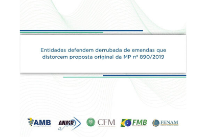 A Associação Médica Brasileira (AMB), o Conselho Federal de Medicina (CFM) e outras entidades médicas nacionais divulgaram nesta terça-feira (5) um novo manifesto público para que os deputados federais votem contra as emendas que distorcem a Medida Provisória nº 890/2019. A proposta, que institui o programa Médicos pelo Brasil, foi apresentada ao Congresso pelo Ministério da Saúde e deve ser apreciada pelo Plenário da Câmara nos próximos dias. No documento, as entidades elencaram aspectos preocupantes que foram incorporados ao texto original e que representam “um atentado à segurança do atendimento médico à população”.