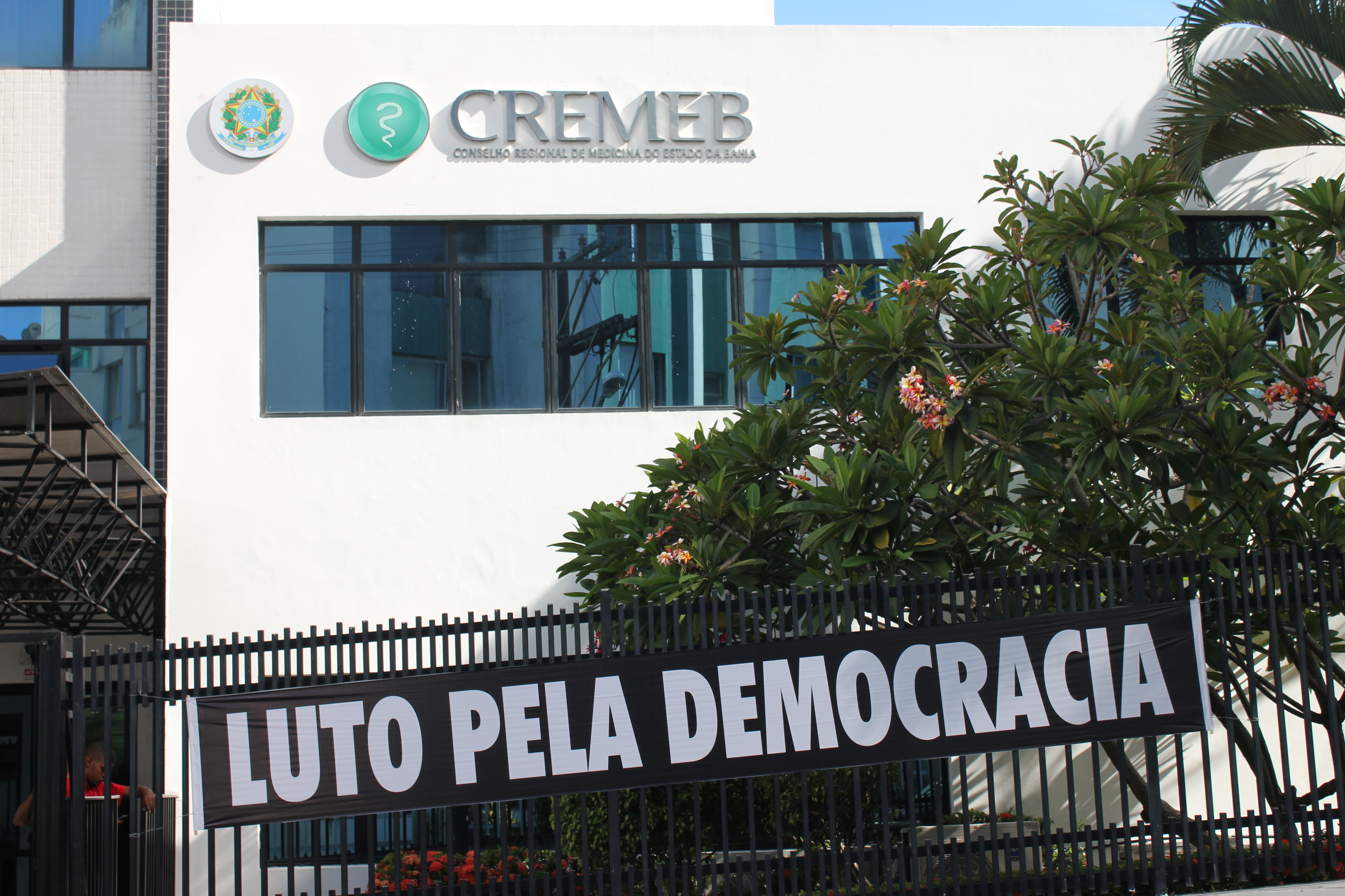 Cremeb protesta contra a corrupção com faixas na sua sede, em Salvador