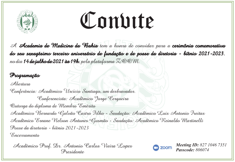 Academia de Medicina da Bahia comemora 63 anos e empossa nova diretoria em cerimônia online
