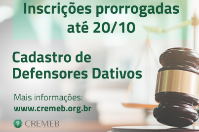 Cremeb inscreve defensores dativos para atuar em processos éticos e procedimentos administrativos