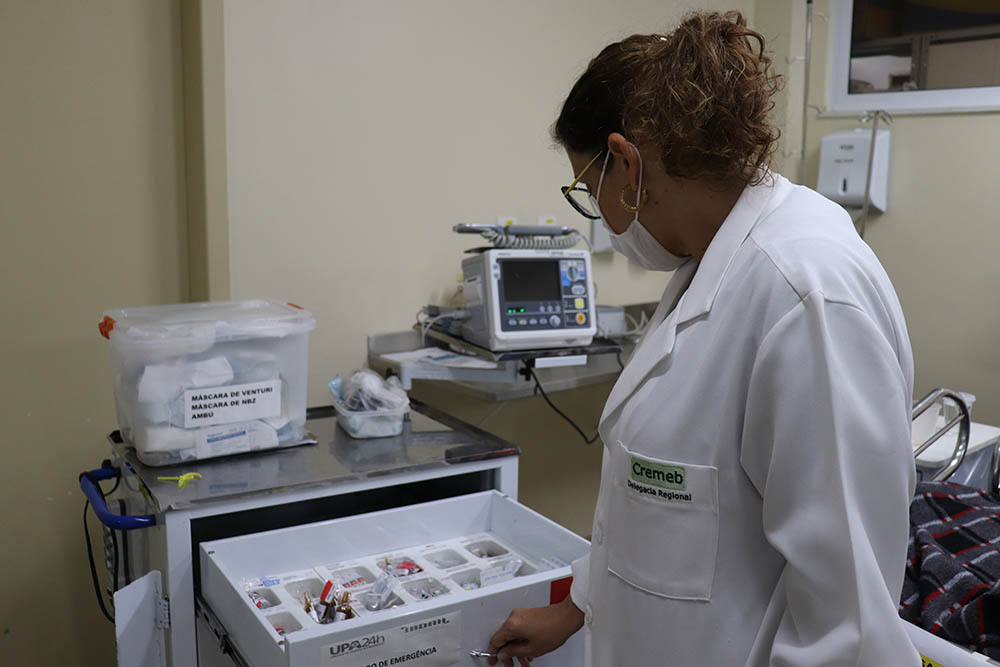 Fiscalizações – As unidades fiscalizadas durante a ação em Vitória da Conquista foram: Hospital Geral, Unidade de Pronto-Atendimento (UPA), Esaú Matos (maternidade e infantil) e Crescêncio Silveira (psiquiátrico). A UPA foi a primeira a ser visitada, no dia 18.08. A unidade, que fica anexa ao Hospital Geral e está concluindo uma reforma, funciona como a emergência do Hospital Geral de Vitória da Conquista (HGVC), com porta aberta e estava com um grande fluxo de pacientes, inclusive, muitos deles aguardando nos corredores para serem transferidos para internamento no hospital geral. O fato de ter pacientes graves, com a necessidade de atendimento em UTI, internados na sala vermelha foi um dos problemas que mais chamou atenção da equipe.