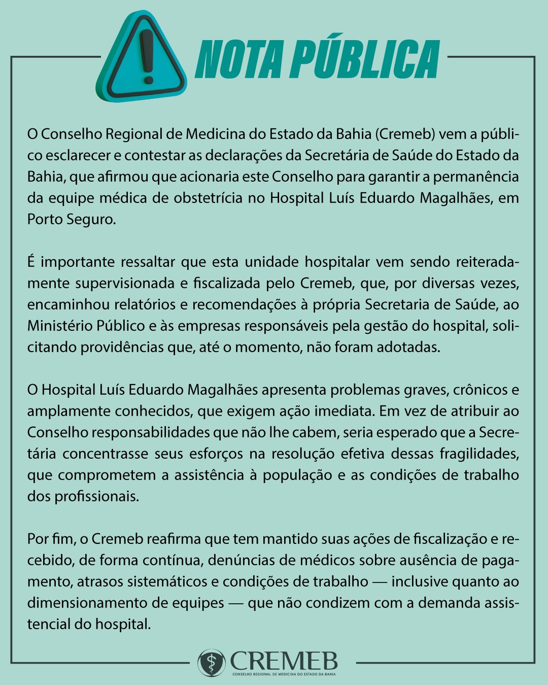 Cremeb rebate fala da Secretária de Saúde sobre equipe de obstetrícia no Hospital Luís Eduardo Magalhães