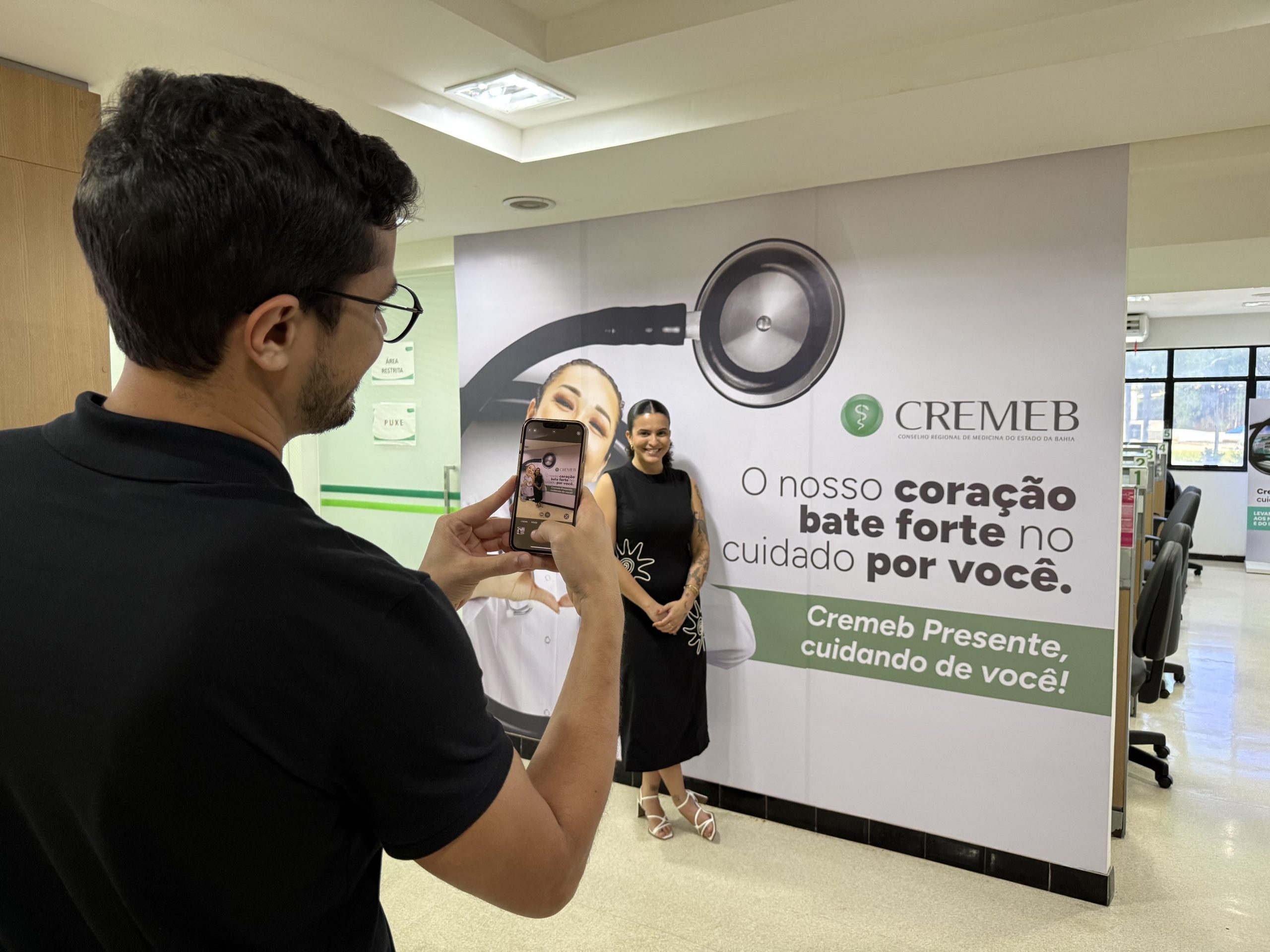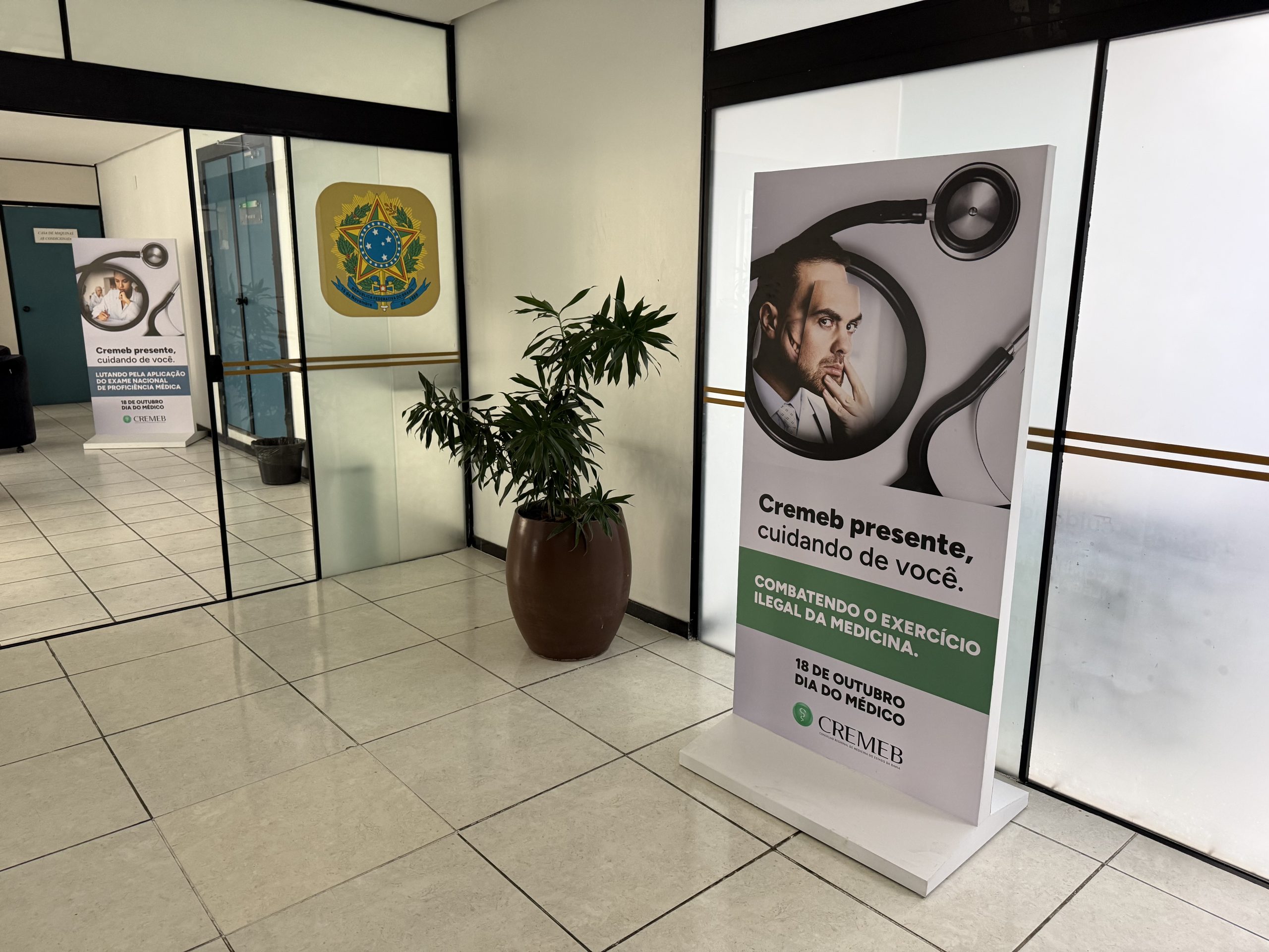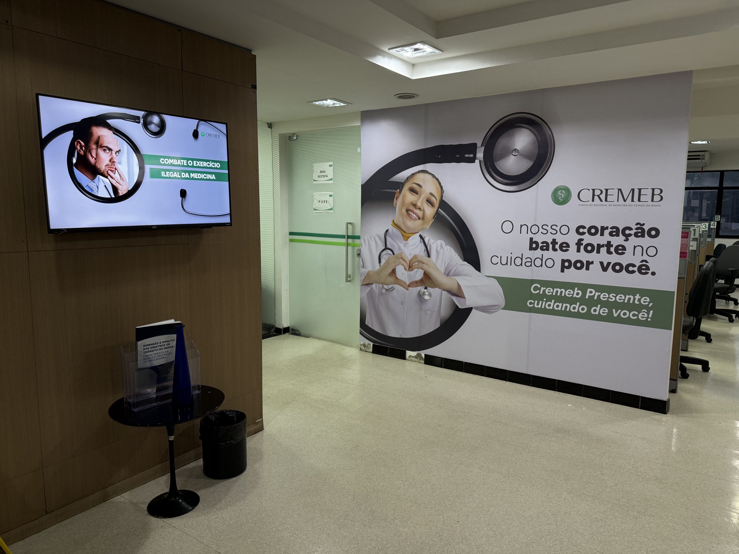 A fachada, a porta principal, os elevadores, os corredores e até uma parede instagramável foram transformados com elementos visuais que destacam o compromisso do Conselho com a valorização da medicina e o cuidado com quem cuida.
