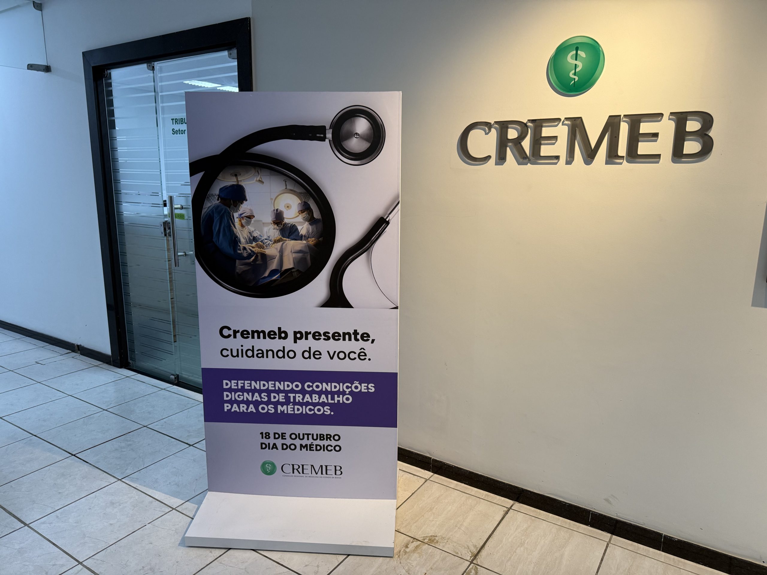 Quem passou pela sede do Cremeb, em Salvador, nos últimos dias, deve ter percebido algo diferente. Em celebração ao Mês do Médico, o Conselho recebeu uma decoração especial inspirada na campanha “Cremeb presente, cuidando de quem cuida de você”, que ganhou, no ambiente interno, uma versão adaptada: “Cremeb presente, cuidando de você”, dedicada aos profissionais médicos que frequentam o Conselho.